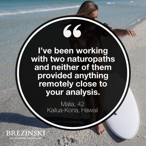 In addition to the laboratory report, you will also receive my analysis of your test results based on Dr. Lawrence Wilson’s interpretation system. This is an advanced interpretation system that gives you deeper insight into your health. This report is non-technical and easy to read—you don’t need a PhD to understand your results.